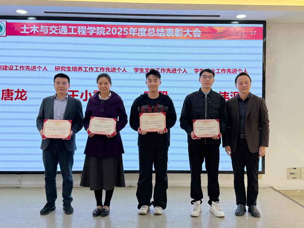 2025年度先进集体和个人的决定》,授予测绘遥感系、汇心心理辅导站“2025年度先进集体”称号,授予庄丽贤等17名教职工“2025年度工作先进个人”称号,并由周建强为受表彰的集体和个人颁发荣誉证书和奖励金。